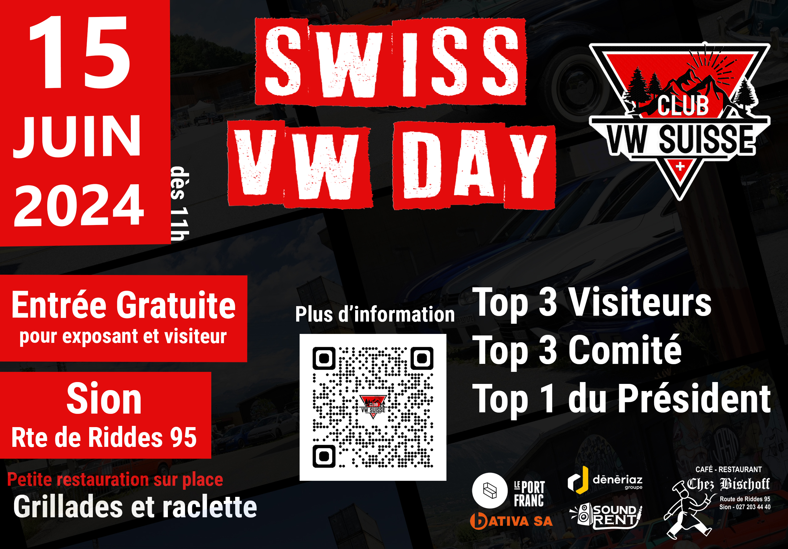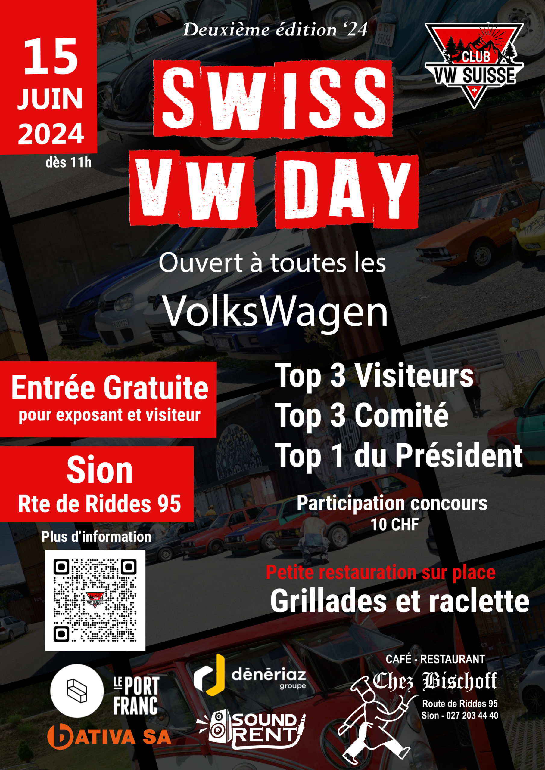 Swiss Vw Day N°2 par PiiWii_Master_26 | Mar 28, 2024 Les Inscriptions ont fermées Swiss Vw Day N°2 par Club Vw Suisse 332 332 people viewed this event. Date et heure 15-06-2024 @ 11:00 à 15-06-2024 Lieu Rte de Riddes 95, 1950 Sion Partager avec des amis Facebook Twitter Linkedin Xing Pinterest