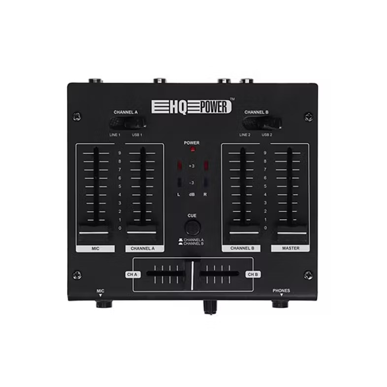 La HQ Power 2 canaux est une table de mixage à 2 canaux, ce qui la rend idéale pour des configurations simples, telles que le mixage de deux sources audio (par exemple, un microphone et un lecteur audio ou un instrument).